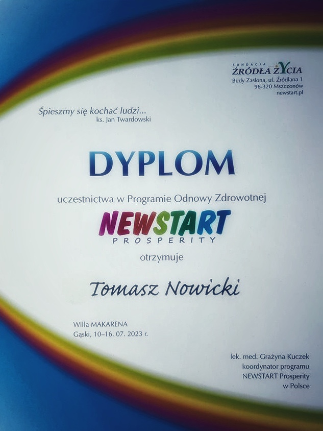 Newstart Prosperity to doskonały program edukacyjny, który oprócz wypracowywania nowych nawyków żywieniowych dostarcza potężnej dawki wiedzy z zakresu stosowania diet wegańskich. Cały tydzień szkoleń, w których brałem udział w lipcu, w znaczącym stopniu poszerzył moją wiedzę i kompetencje dietetyczne.